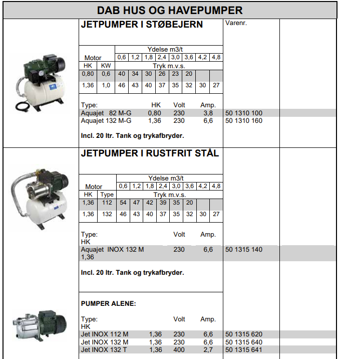 SMÅ PUMPER (erstatning for Lowara & Ebara )