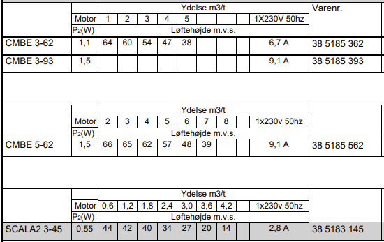 SMÅ PUMPER (erstatning for Lowara & Ebara )