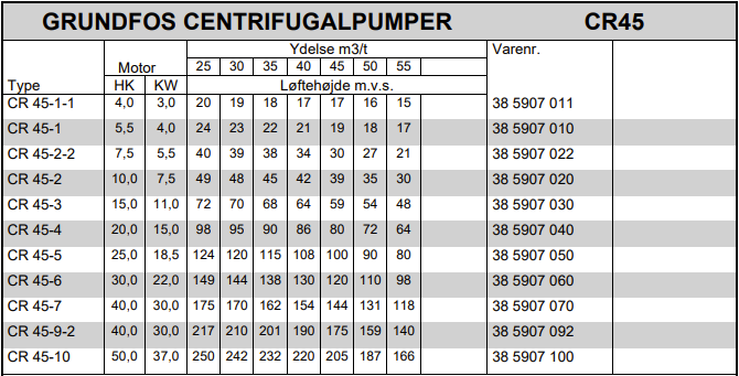 SMÅ PUMPER (erstatning for Lowara & Ebara )