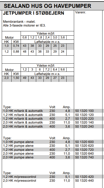 SMÅ PUMPER (erstatning for Lowara & Ebara )
